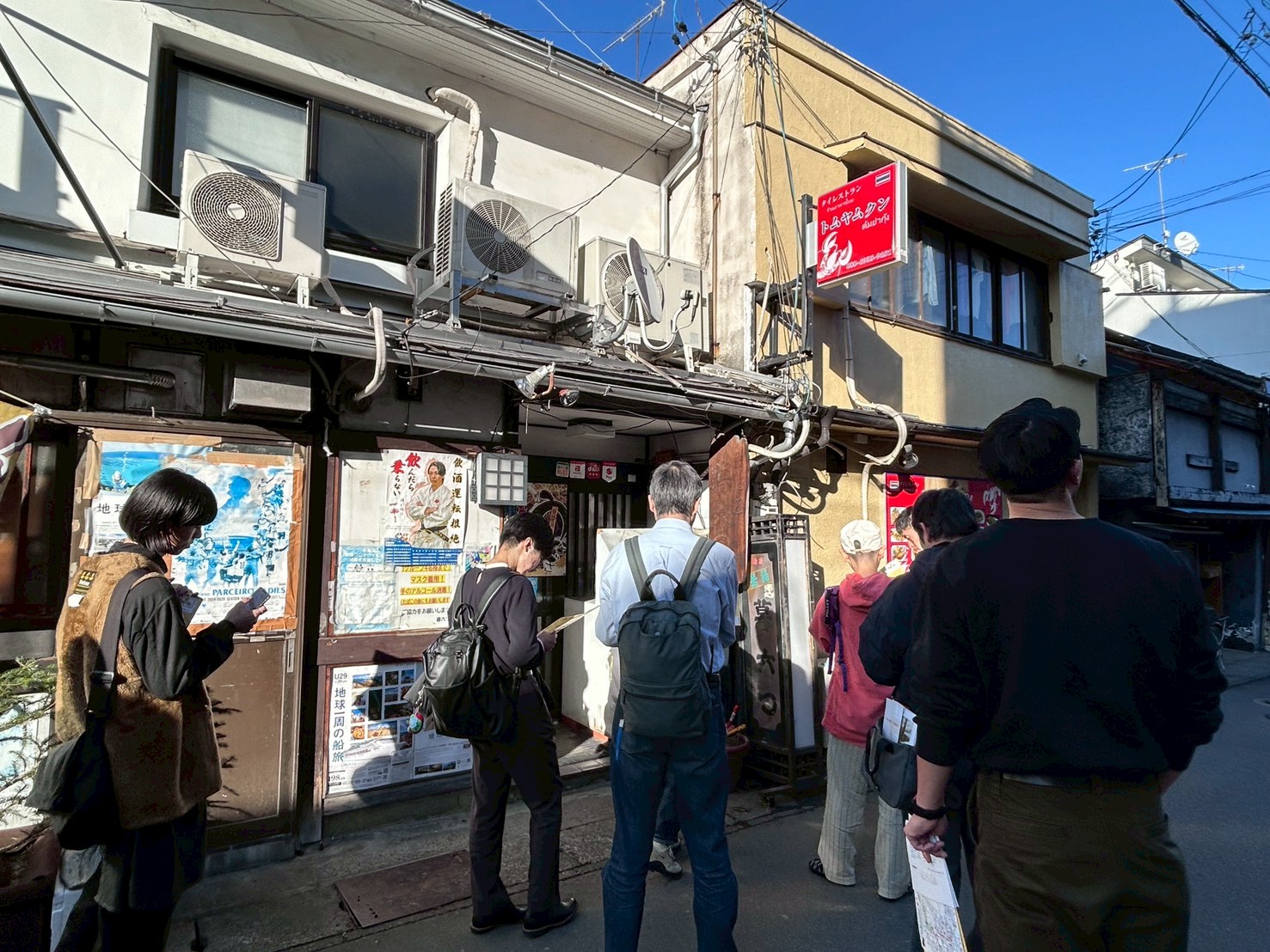 早速出発です。権堂のアーケードを談笑しながら抜けると西鶴賀商店街。マップを見ながら10歩進むにつれ1店舗くらいのペースで紹介してもらいました。ほとんど全飲食店を網羅的に紹介してもらっていたので、レポートでは抜粋させていただきます。