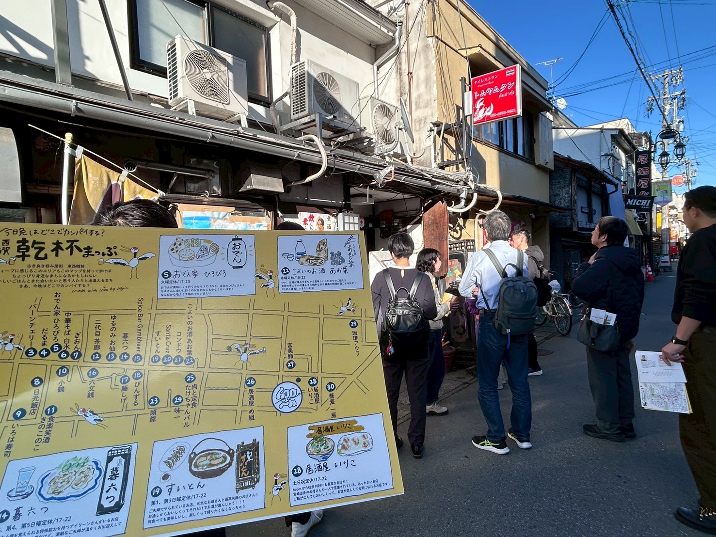 「東西鶴賀乾杯マップ」と題して、ゲストハウスhopin.店主の村上さくらさんが案内人となった今回のまちあるき。