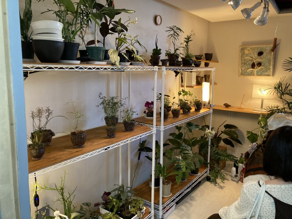 店内には観葉植物がところ狭しと並び、もちろん購入もOK。席数は5席で、営業は木〜日。貸し切り利用も多く、予約を入れてもらえると「超うれしい!」とのこと。