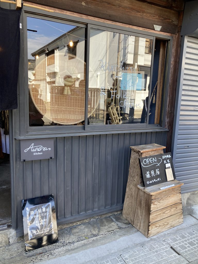1軒目は「Aurora kitchen」さんです。古民家をリノベーションした、台所用品と民芸道具のコンセプトショップ。